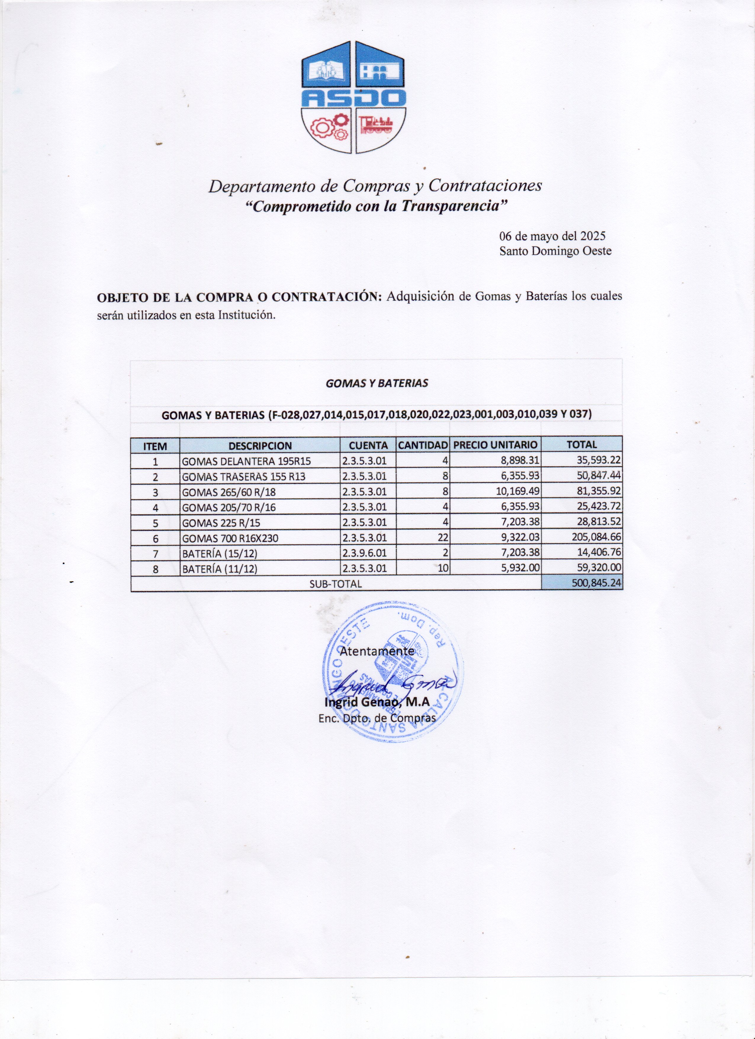 Monto estimado: 500,845.26 DOP