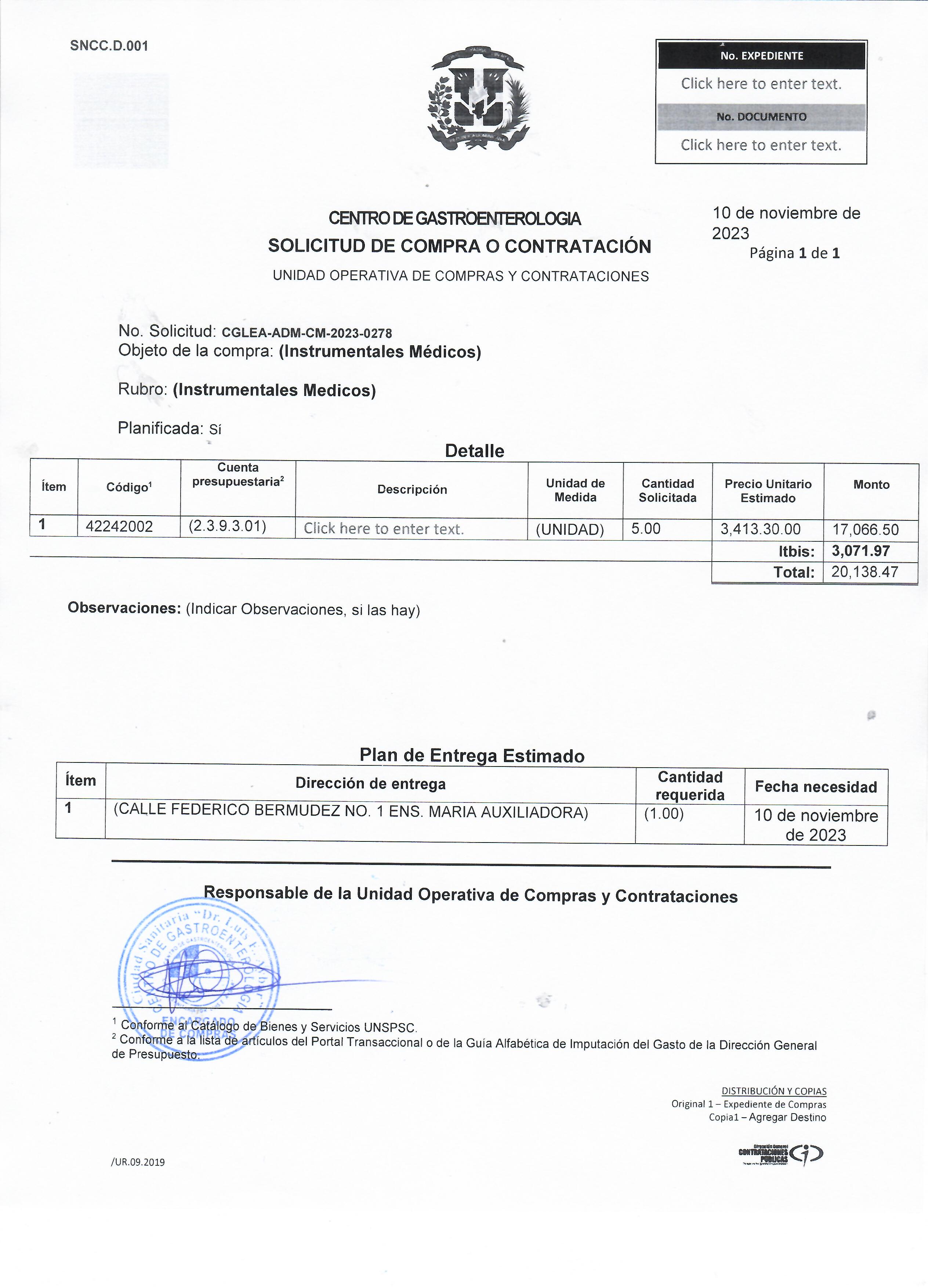 SOLICITUD DE INSTRUMENTALES MEDICOS (CGLEA-UC-CD-2023-0278)