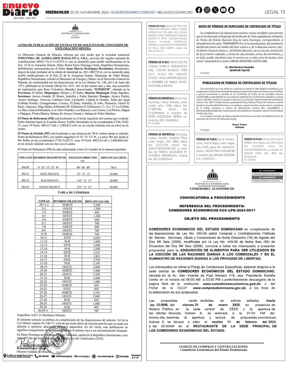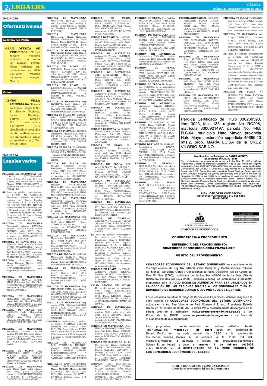 | Lucinio Dilón García | 11507 | 238,155,000.00 DOP | Oferta digital | 07-03-2025 09:42 | Sin adjudicación detectada | contratado: 11,088,000.00 DOP 06-03-2025 13:45 activo |