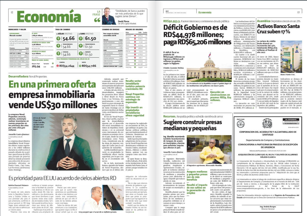 | Inversiones Beraldi SRL | 70047 | 21,240,234.00 DOP | Oferta digital | 12-05-2023 11:20 | Sin adjudicación detectada | contratado: 10,620,117.00 DOP 13-06-2023 14:53 modificado |