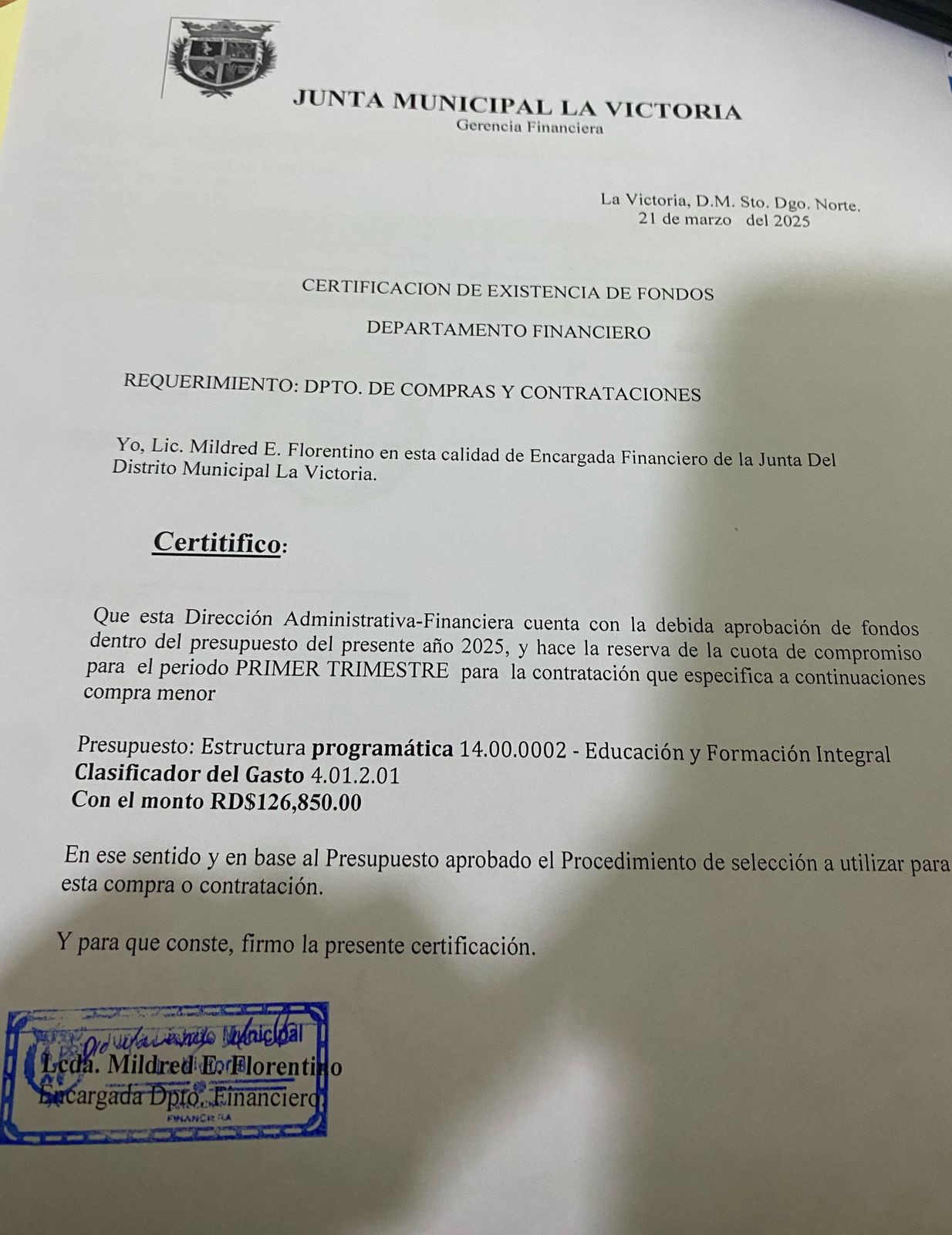 Monto estimado: 126,850.00 DOP