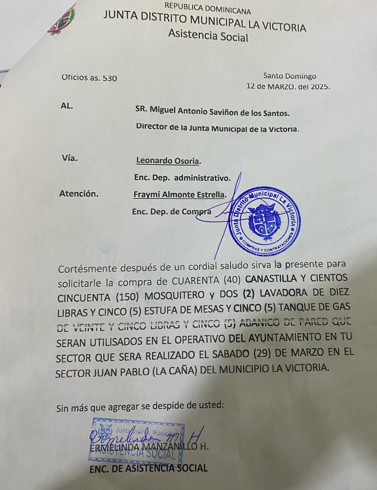 Unidad de compra: Junta Distrito Municipal La Victoria (DO-UC-961)