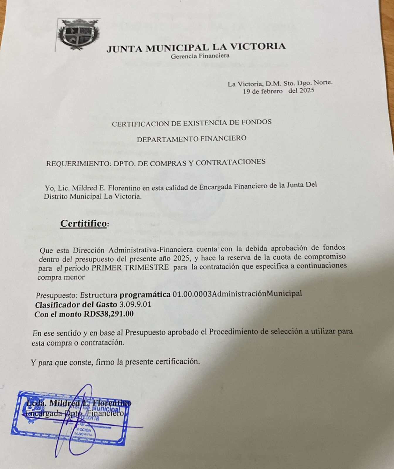 Unidad de compra: Junta Distrito Municipal La Victoria (DO-UC-961)