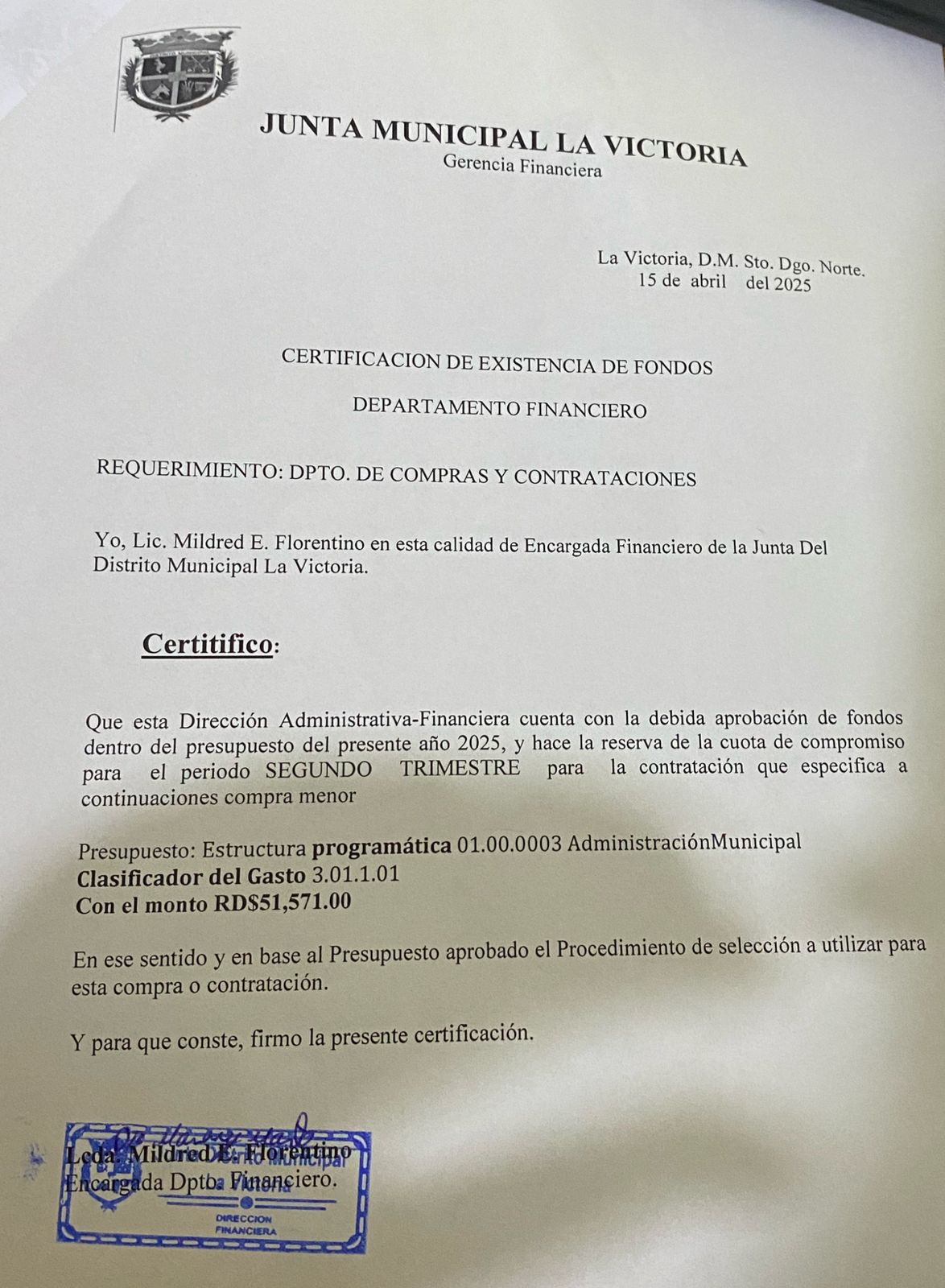 Monto estimado: 51,571.00 DOP