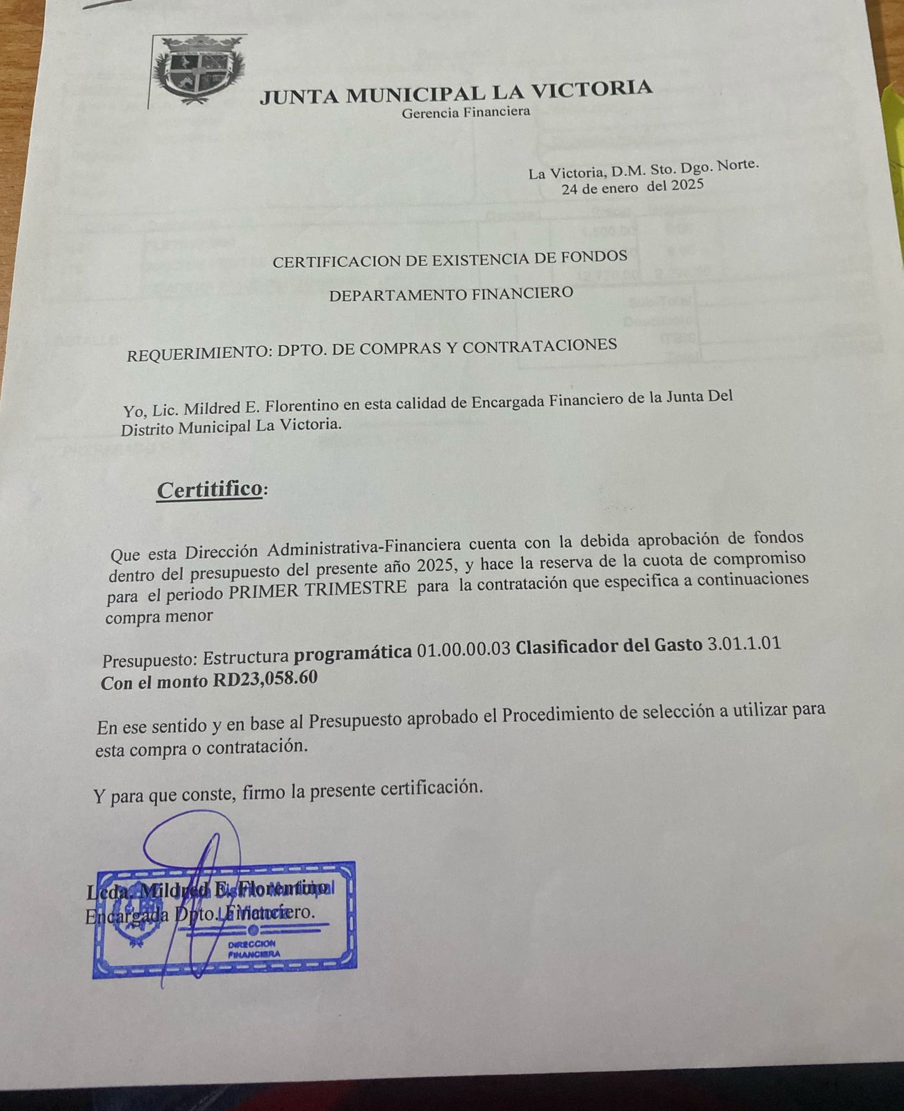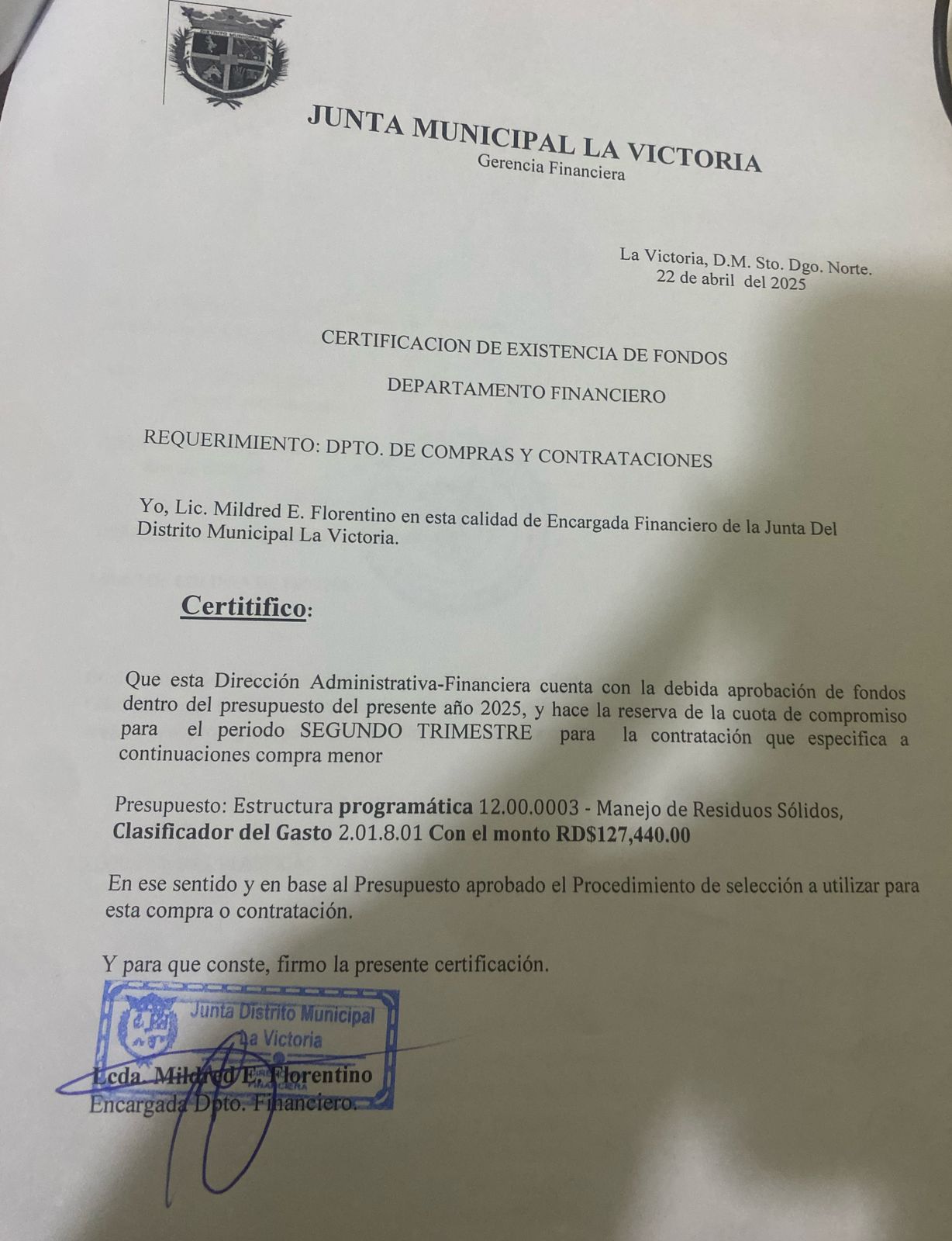 Unidad de compra: Junta Distrito Municipal La Victoria (DO-UC-961)