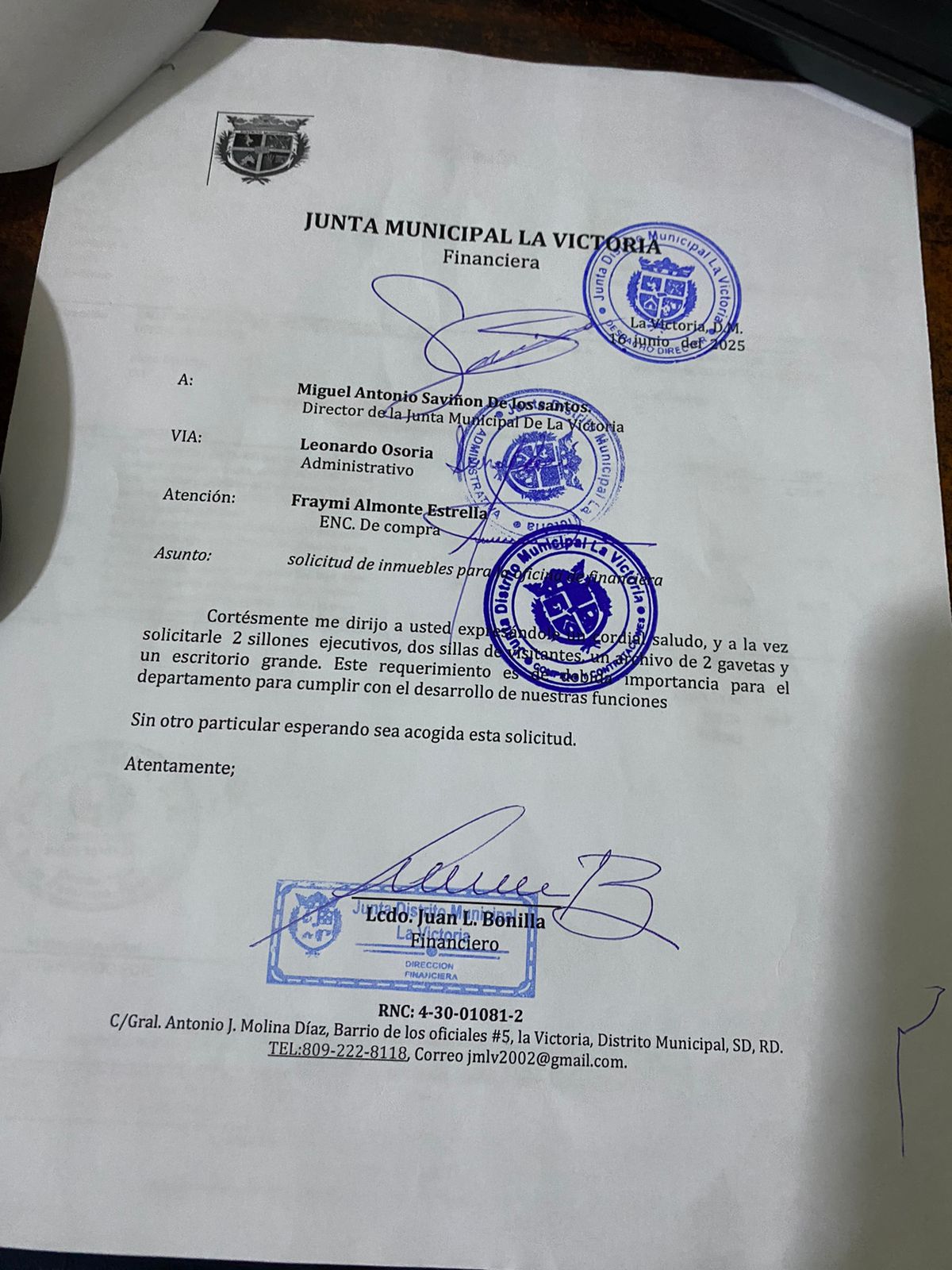 SOLICITUD DE COMPRA DE 1 SIILLON GENERAL-TECNICO, 1 SILLON EJECUTIVO, Y UN ARCHIVO LAMINADO PPARA EL DEPARTAMENTO DE FINANCIERO (JDMV-DAF-CD-2025-0053)