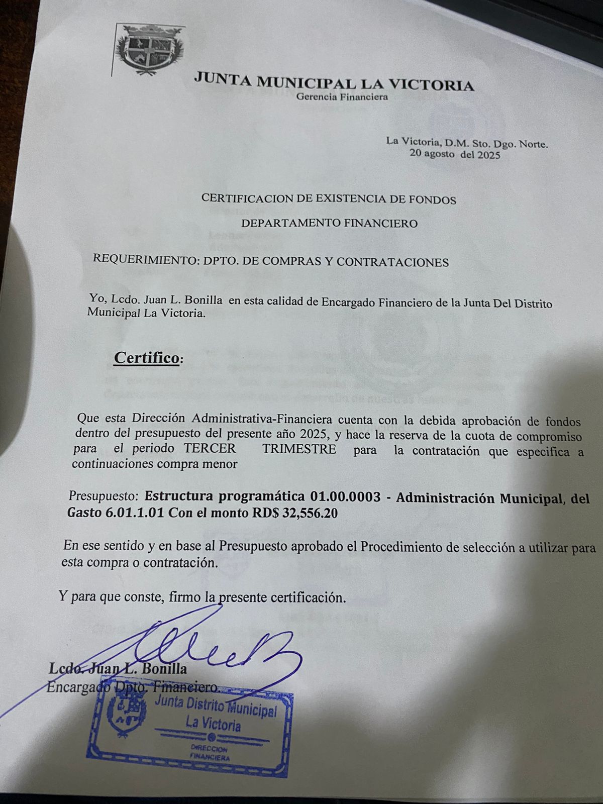Unidad de compra: Junta Distrito Municipal La Victoria (DO-UC-961)