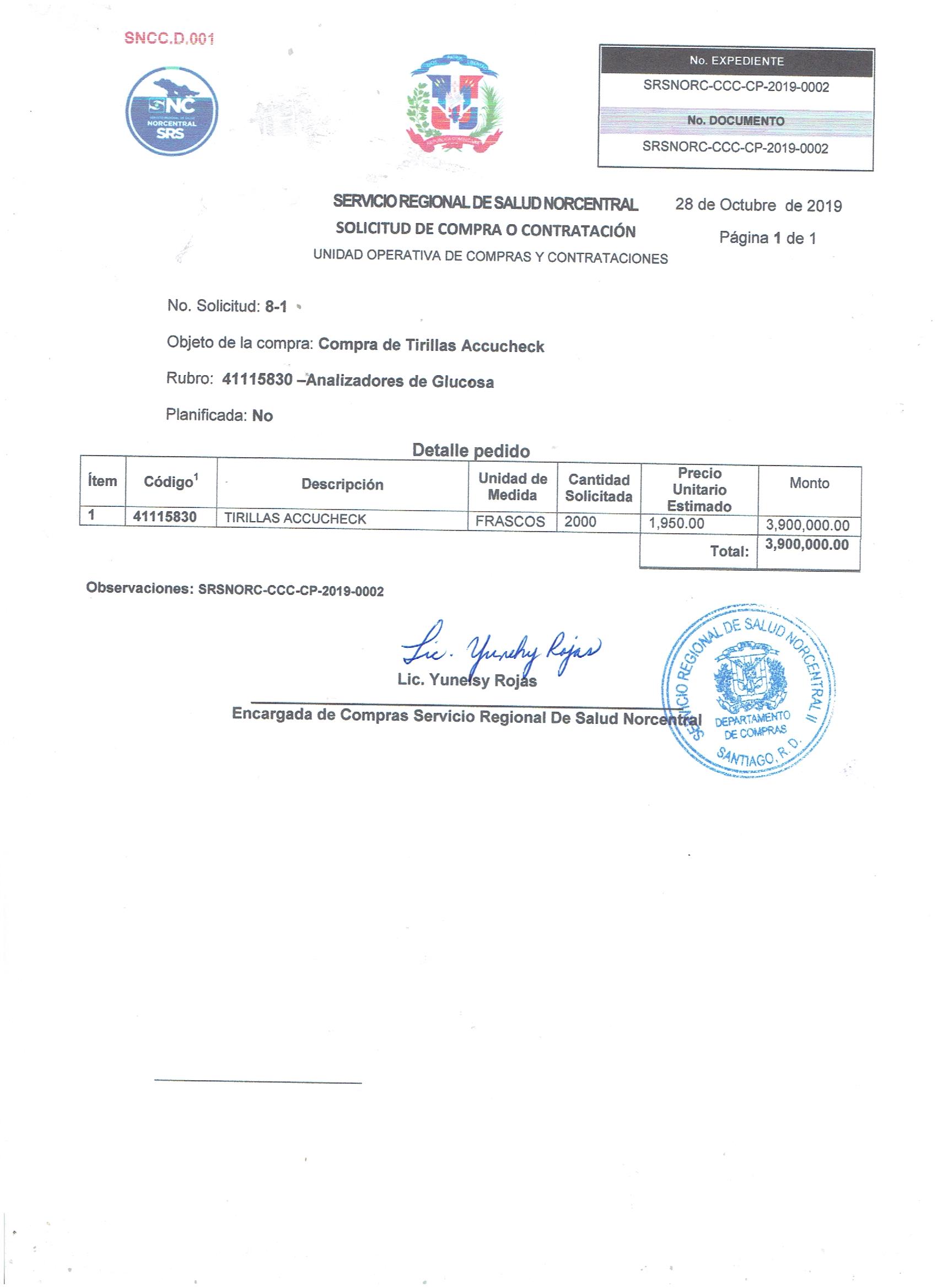 Unidad de compra: SERVICIO REGIONAL DE SALUD CIBAO NORTE (1048)