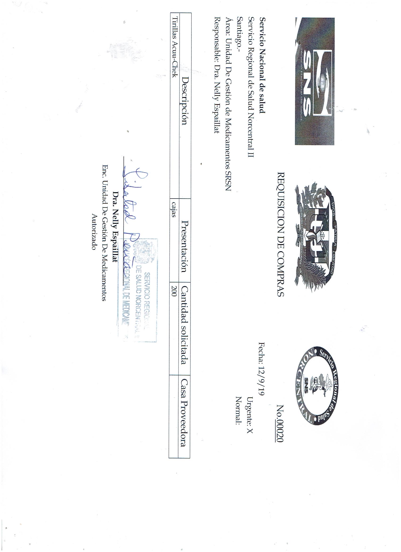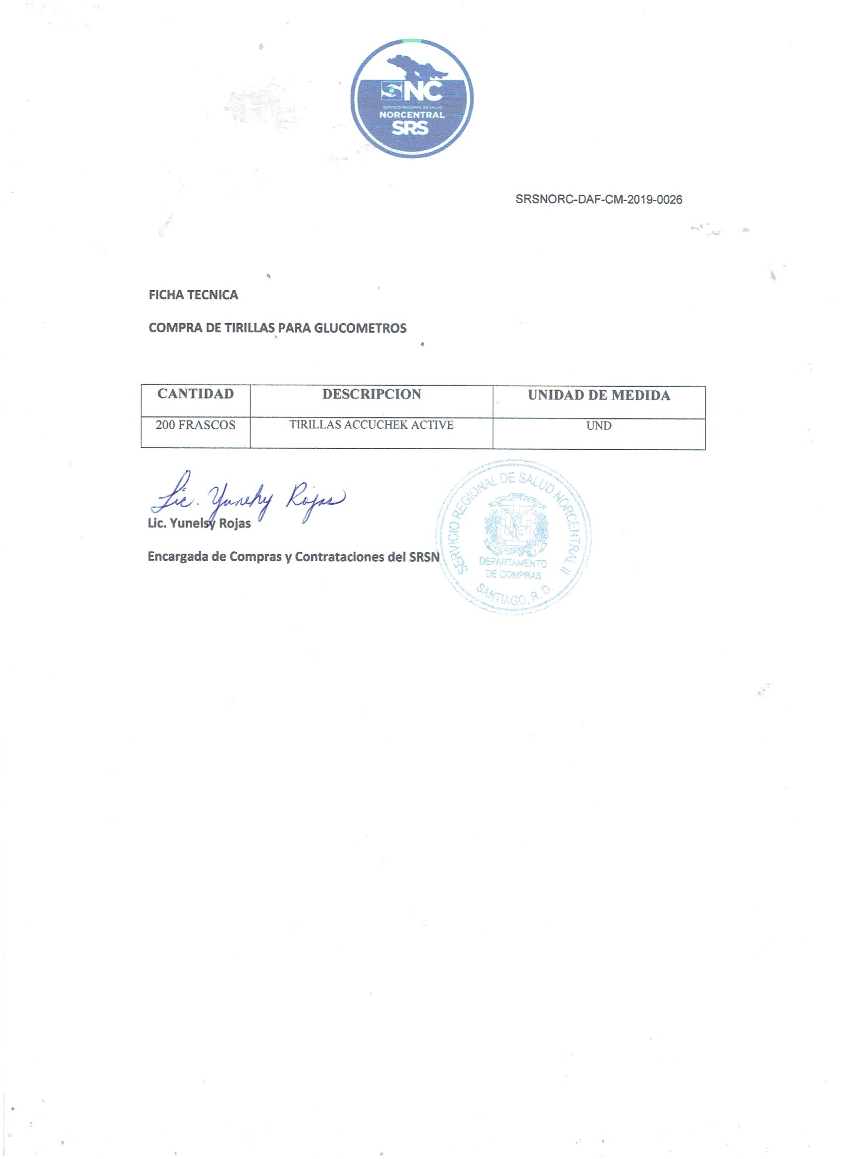 COMPRA DE UTILES MEDICOS (TIRILLAS) (SRSNORC-DAF-CM-2019-0026)