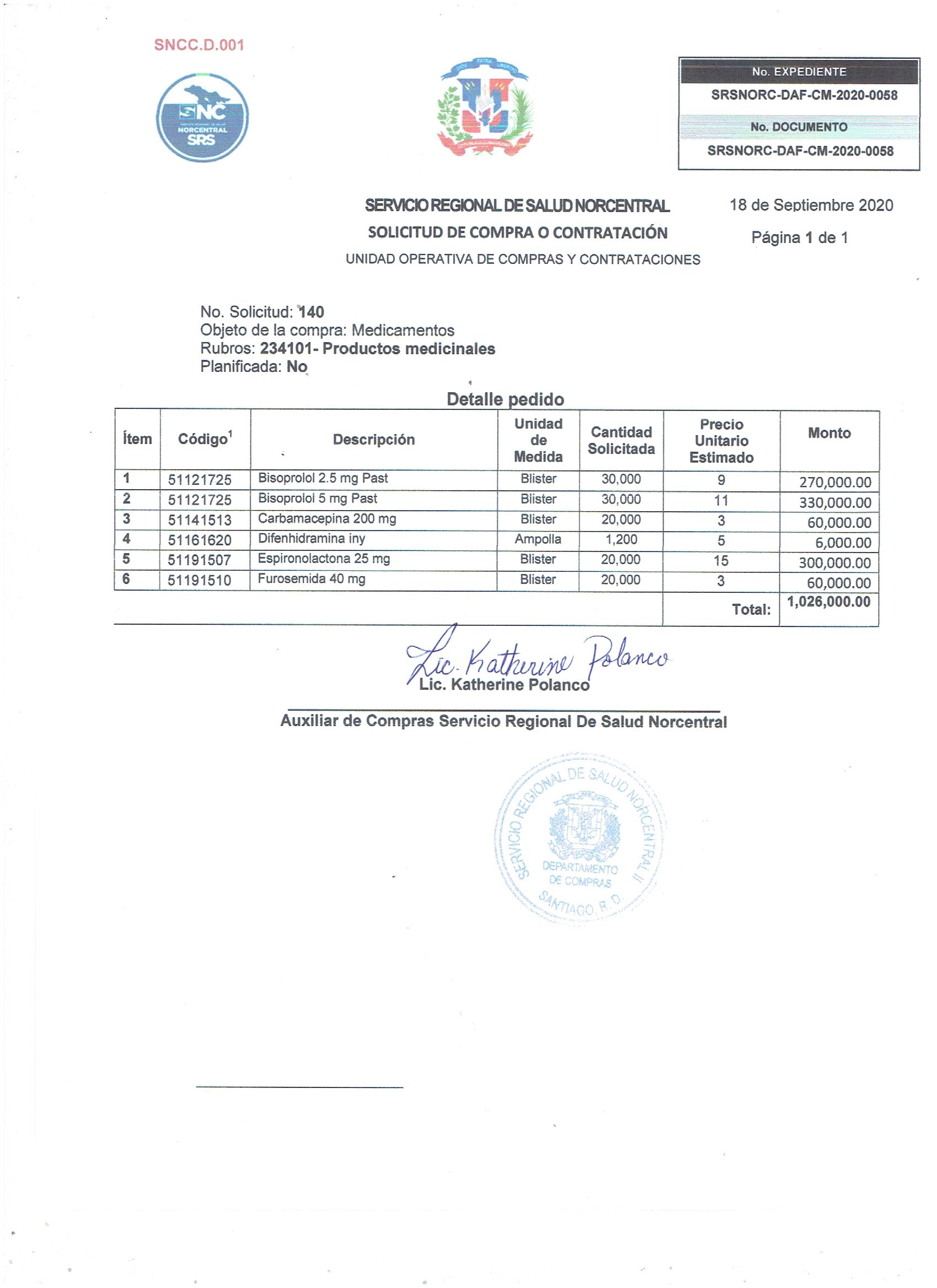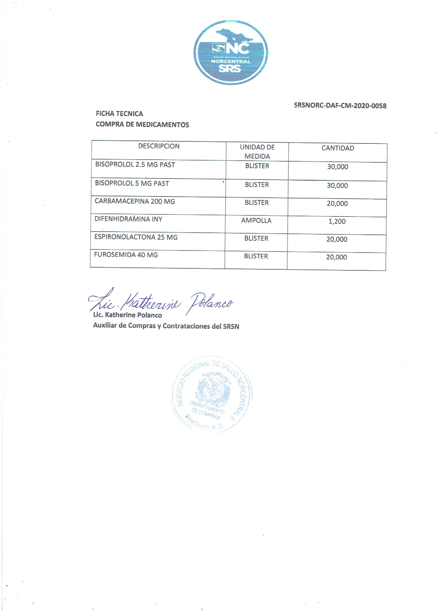 Unidad de compra: SERVICIO REGIONAL DE SALUD CIBAO NORTE (1048)