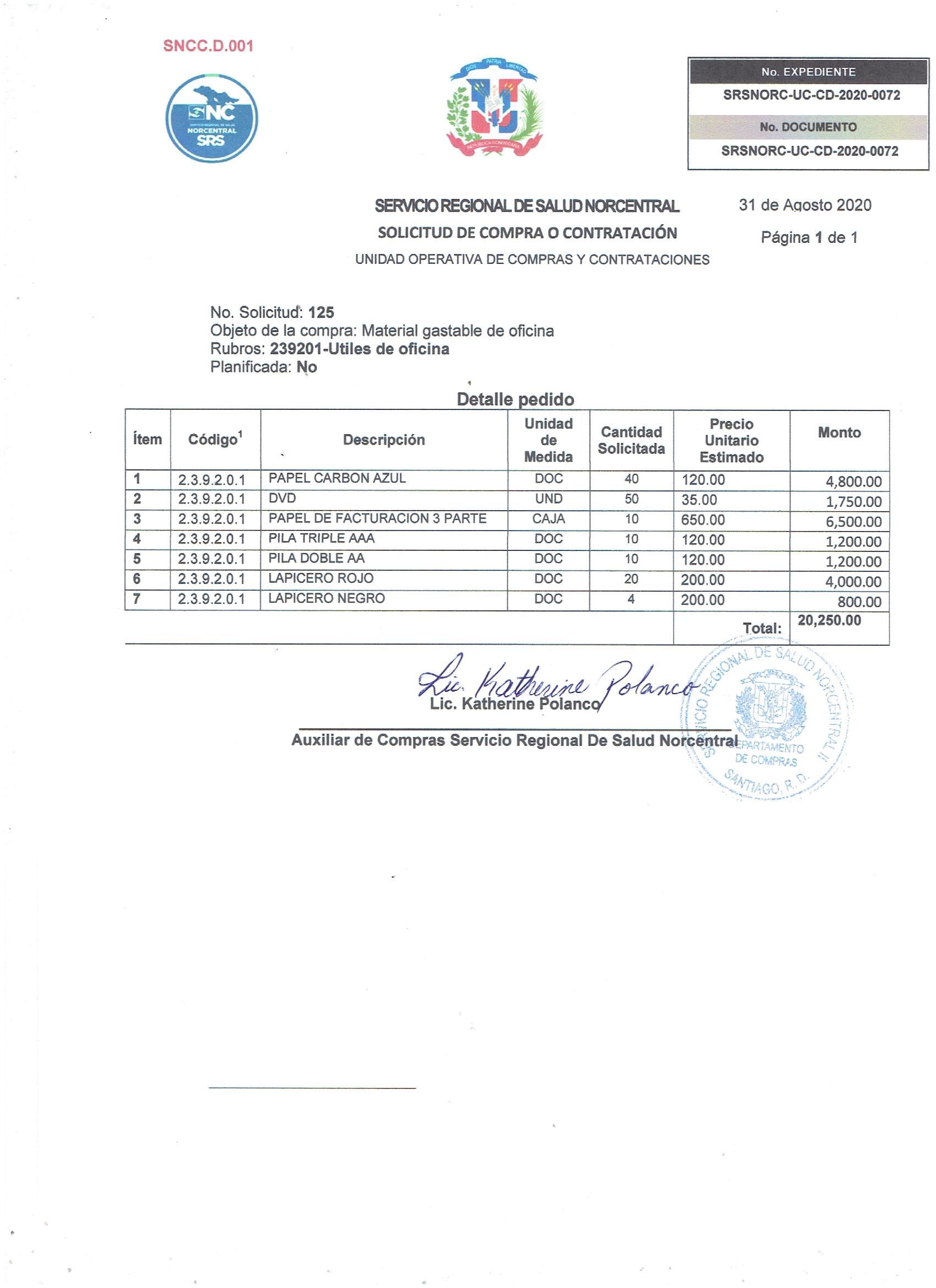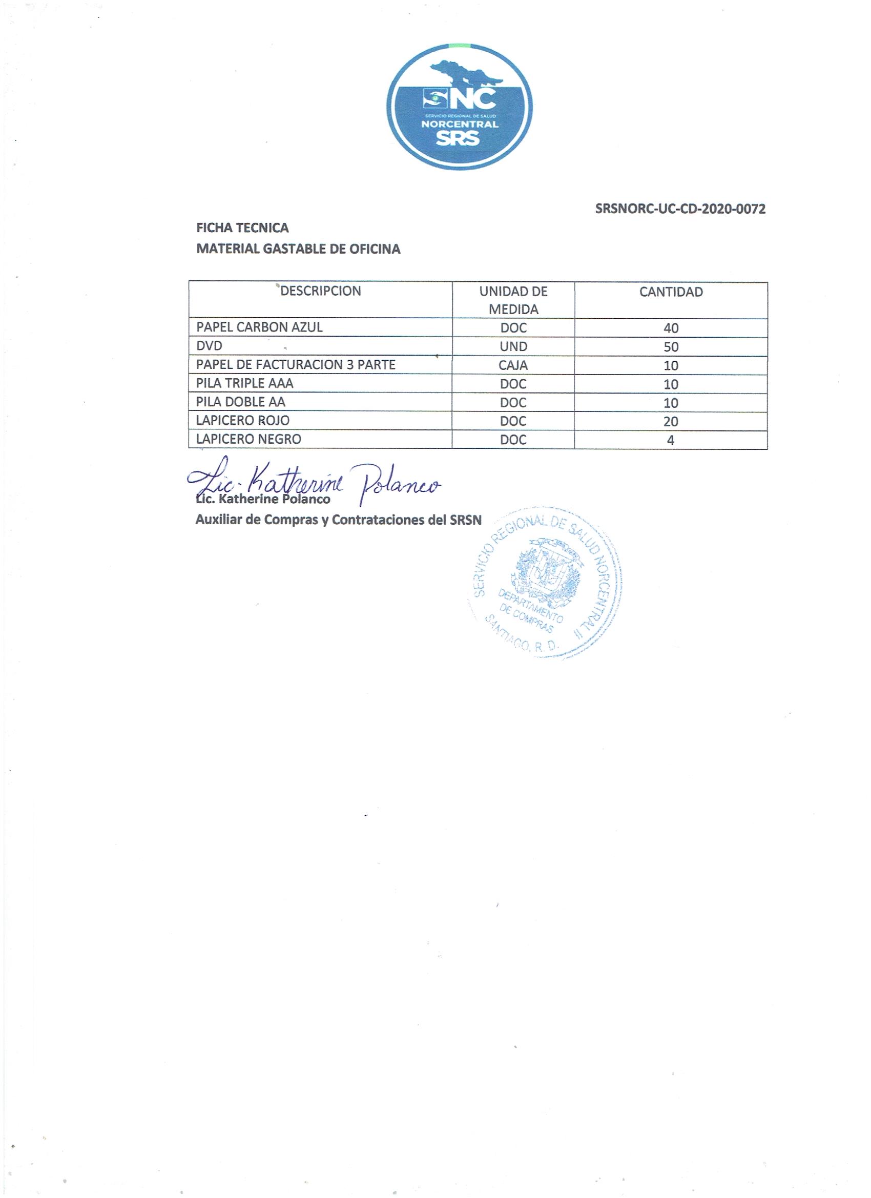 Unidad de compra: SERVICIO REGIONAL DE SALUD CIBAO NORTE (1048)