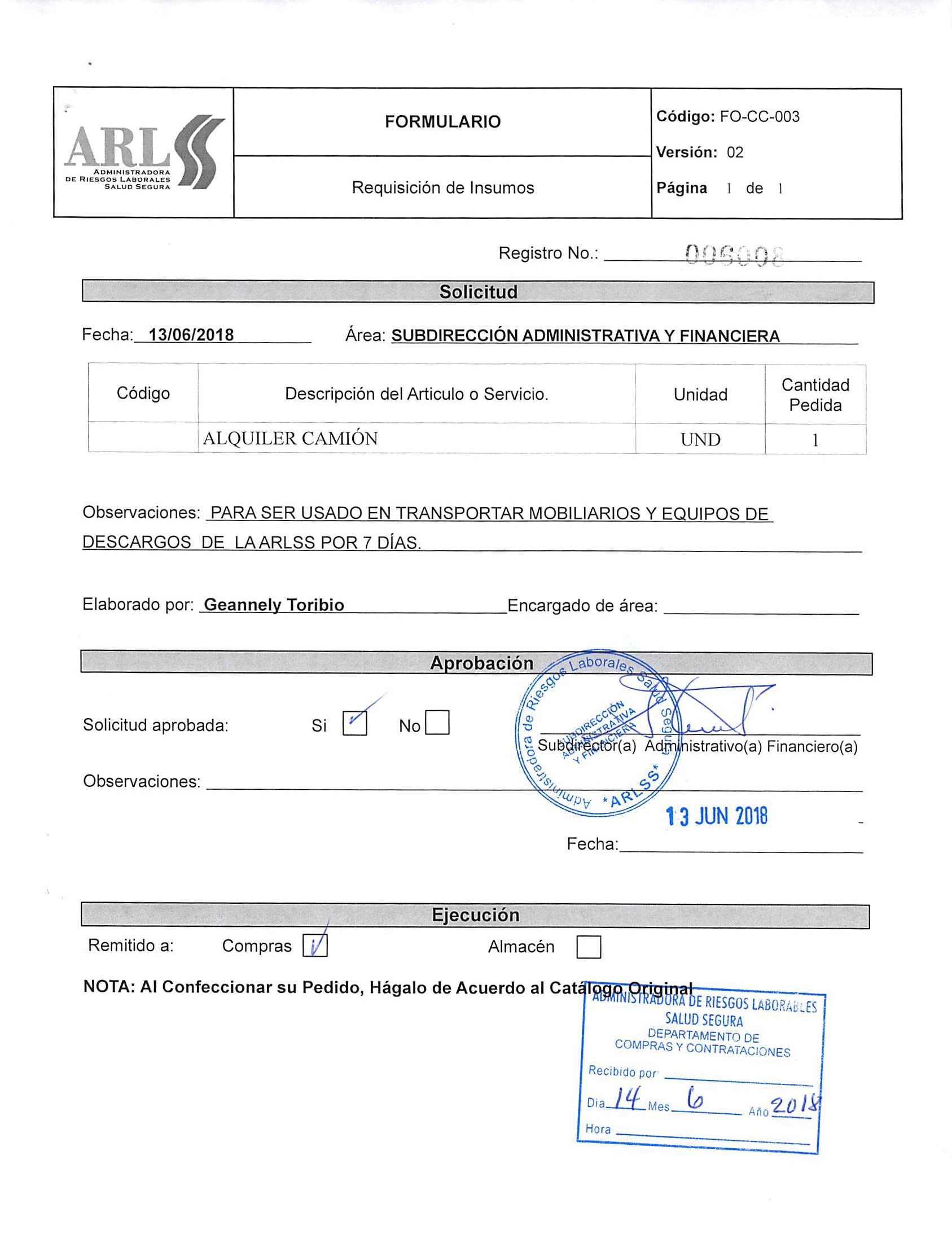 ADQUISICION ALQUILER DE CAMION (ARLSS-DAF-CM-2018-0074)