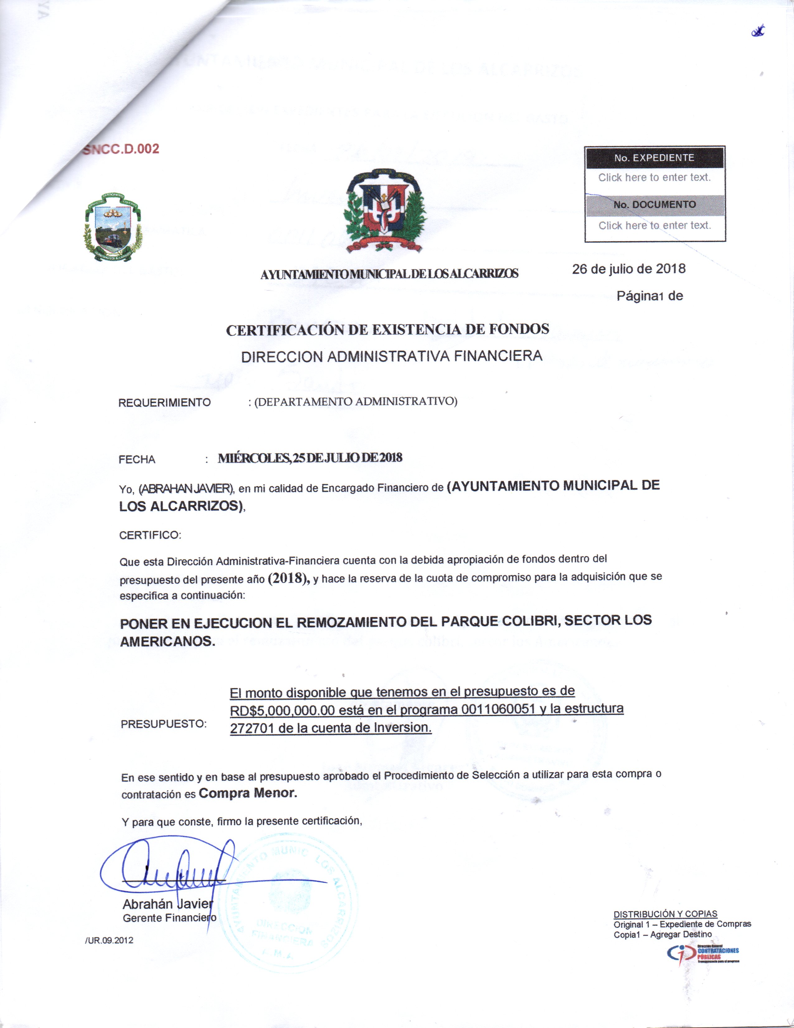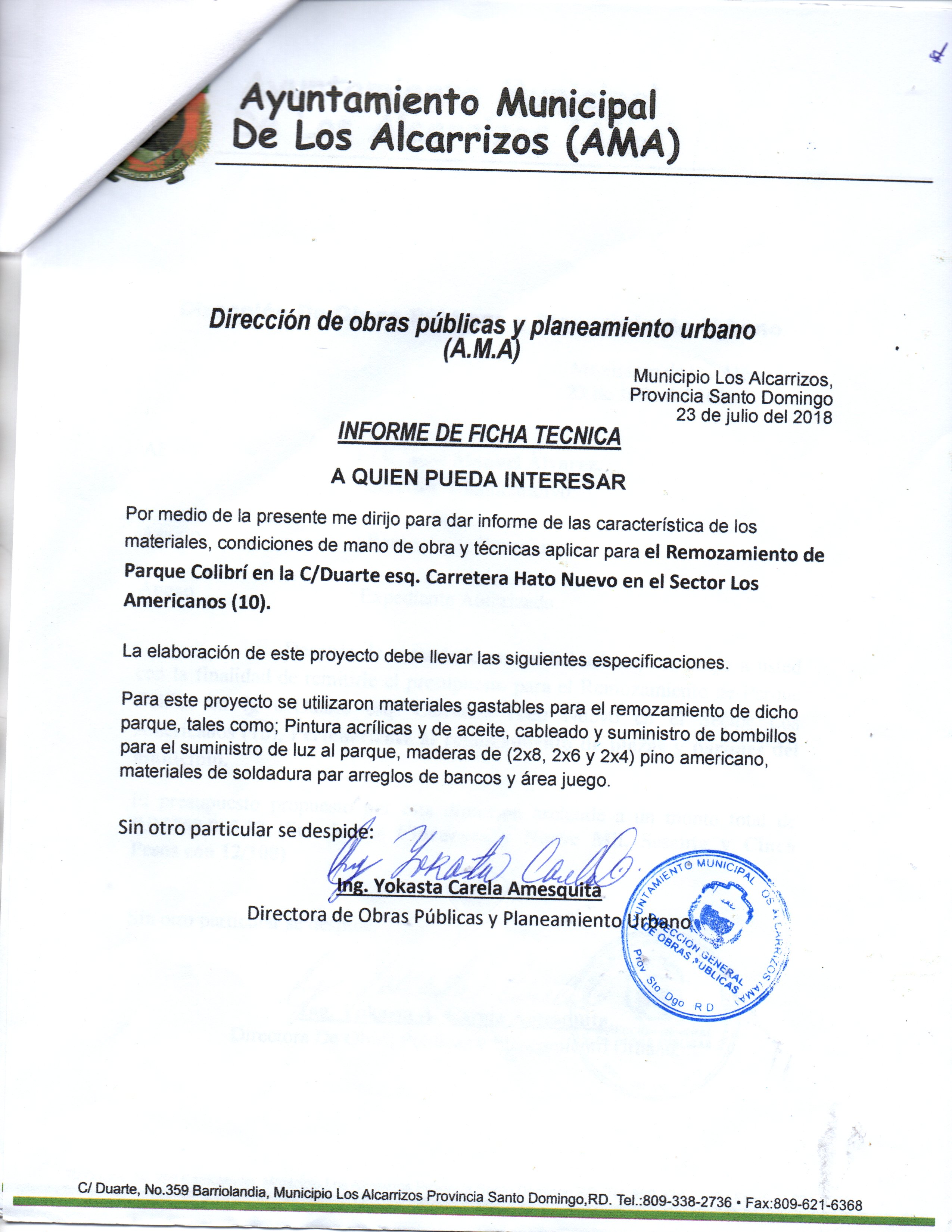 Unidad de compra: Ayuntamiento Municipal de Los Alcarrizos (721)