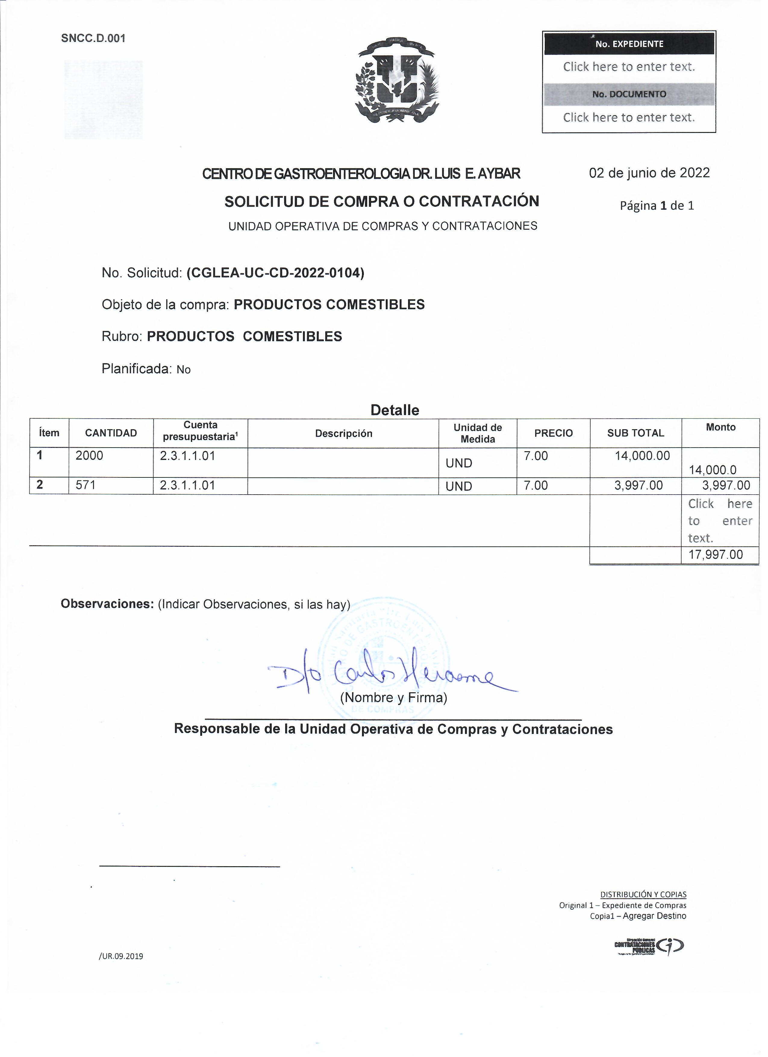 Unidad de compra: Centro de Gastroenterología Doctor Luis Eduardo Aybar (989)