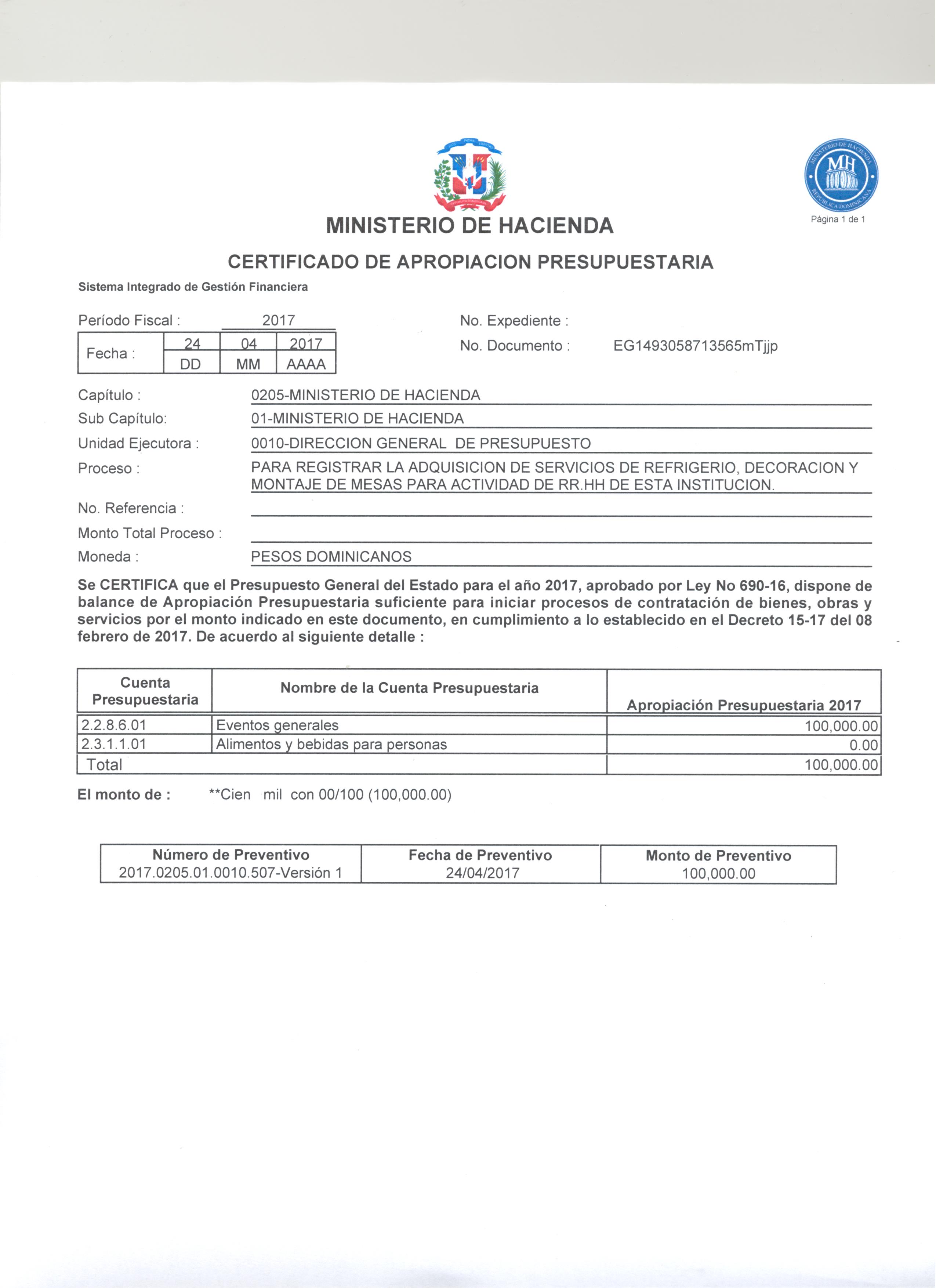 | Recrea Entertainment, SRL | 6332 | 104,371.00 DOP | Oferta física | 04-05-2017 11:00 | Sin adjudicación detectada | contratado: 104,371.00 DOP 04-05-2017 20:23 activo |