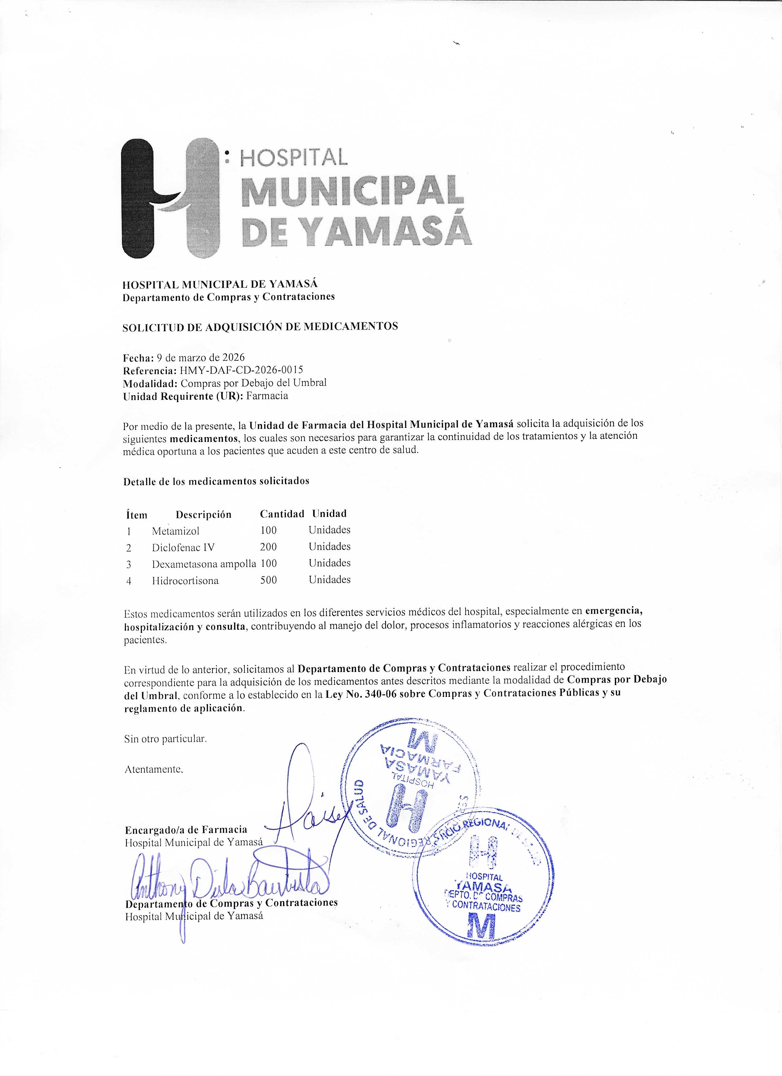 Unidad de compra: Hospital Municipal de Yamasá (1143)