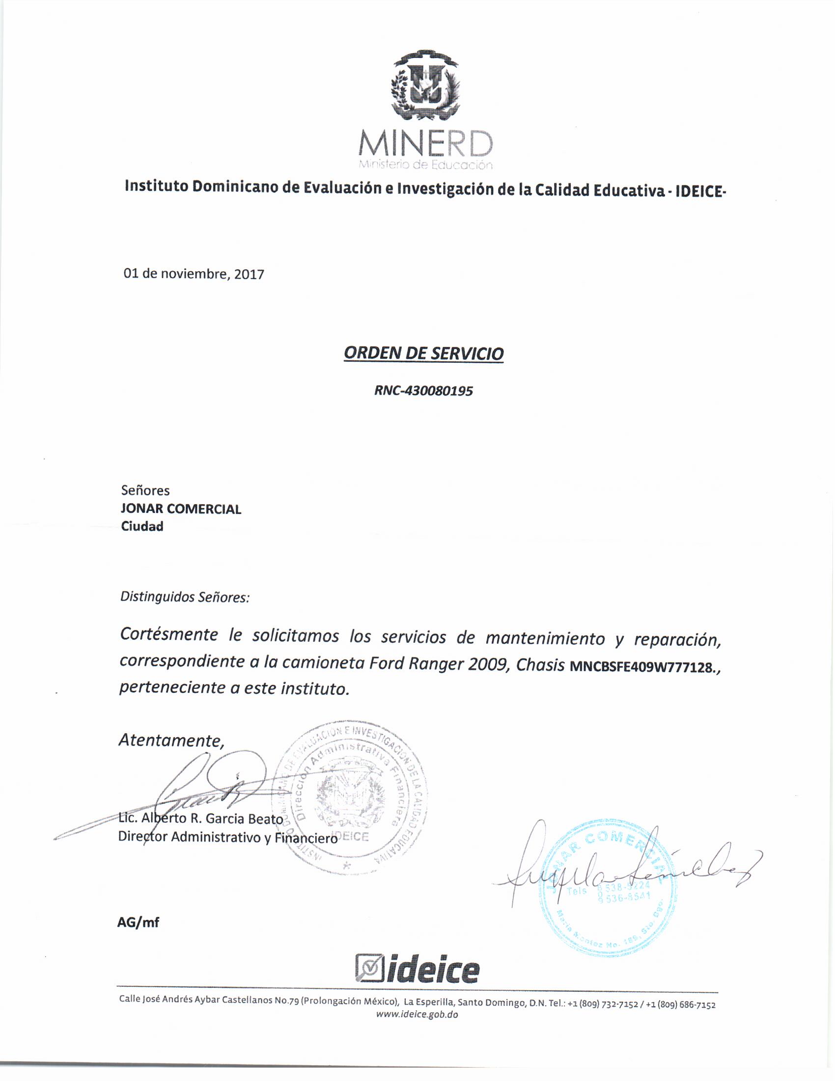MANTENIMIENTO DE VEHÍCULO (IDEICE-CCC-PE15-2017-0012)