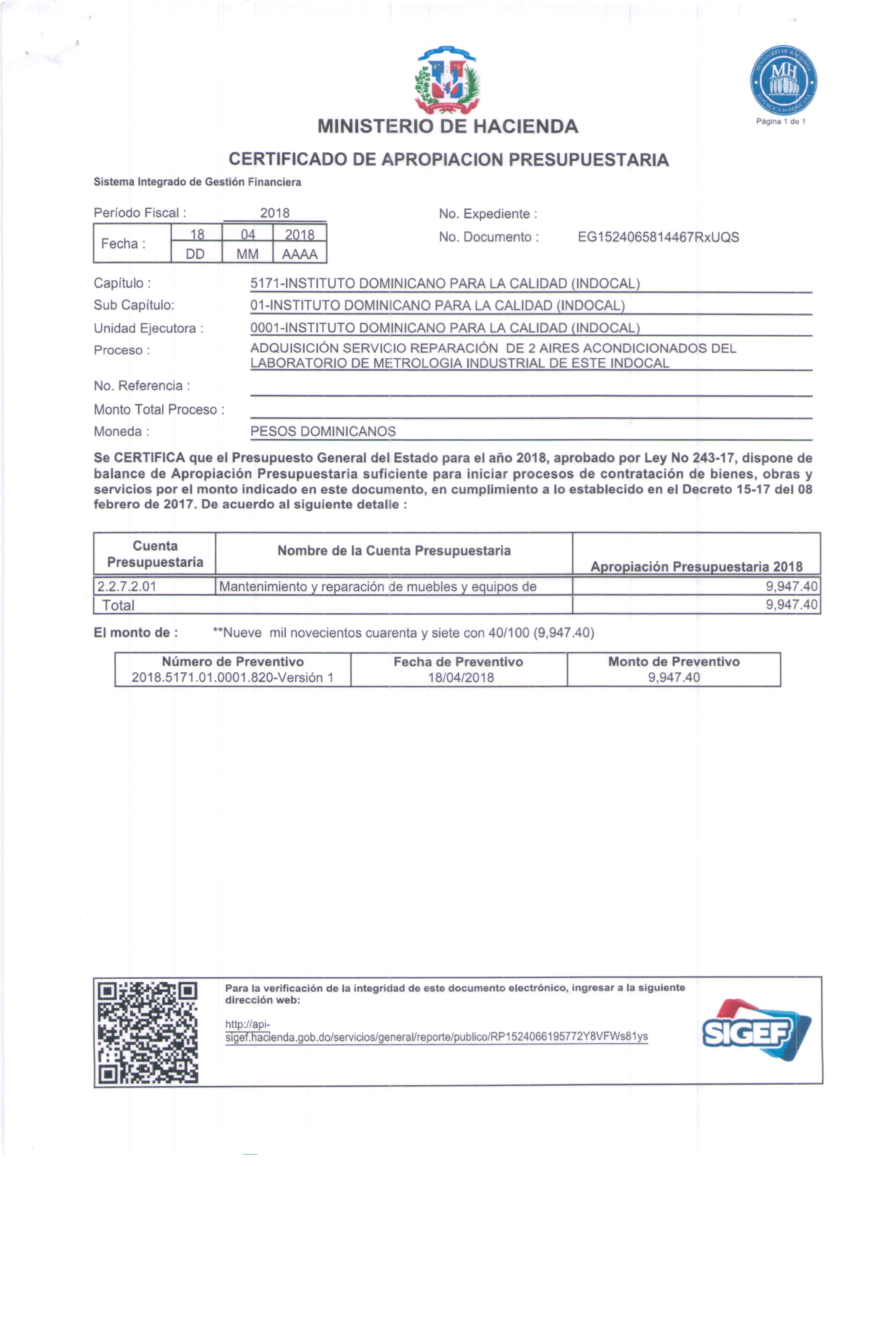 Unidad de compra: Instituto Dominicano para la Calidad (855)