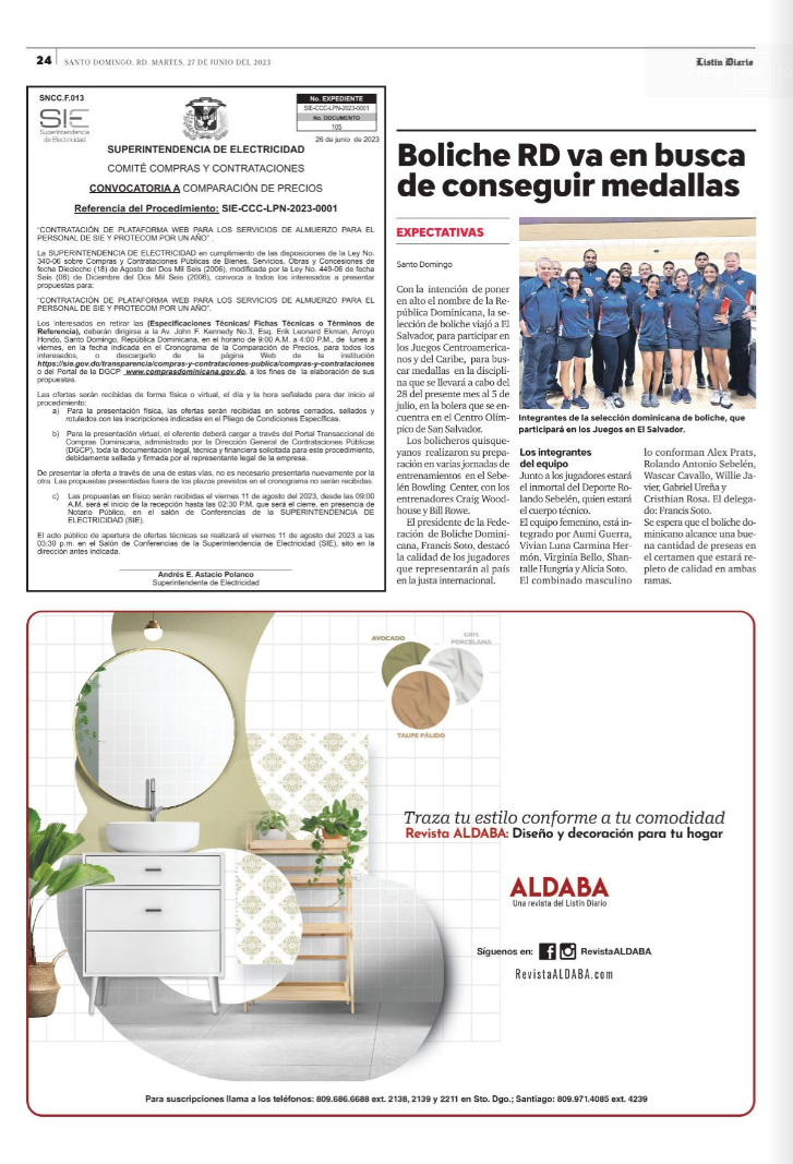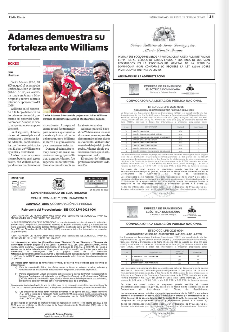 | Inversiones Siurana, SRL | 60258 | 6,825,600.00 DOP | Oferta física | 11-08-2023 12:15 | Sin adjudicación detectada | contratado: 6,825,600.00 DOP 07-09-2023 20:40 cerrado |
