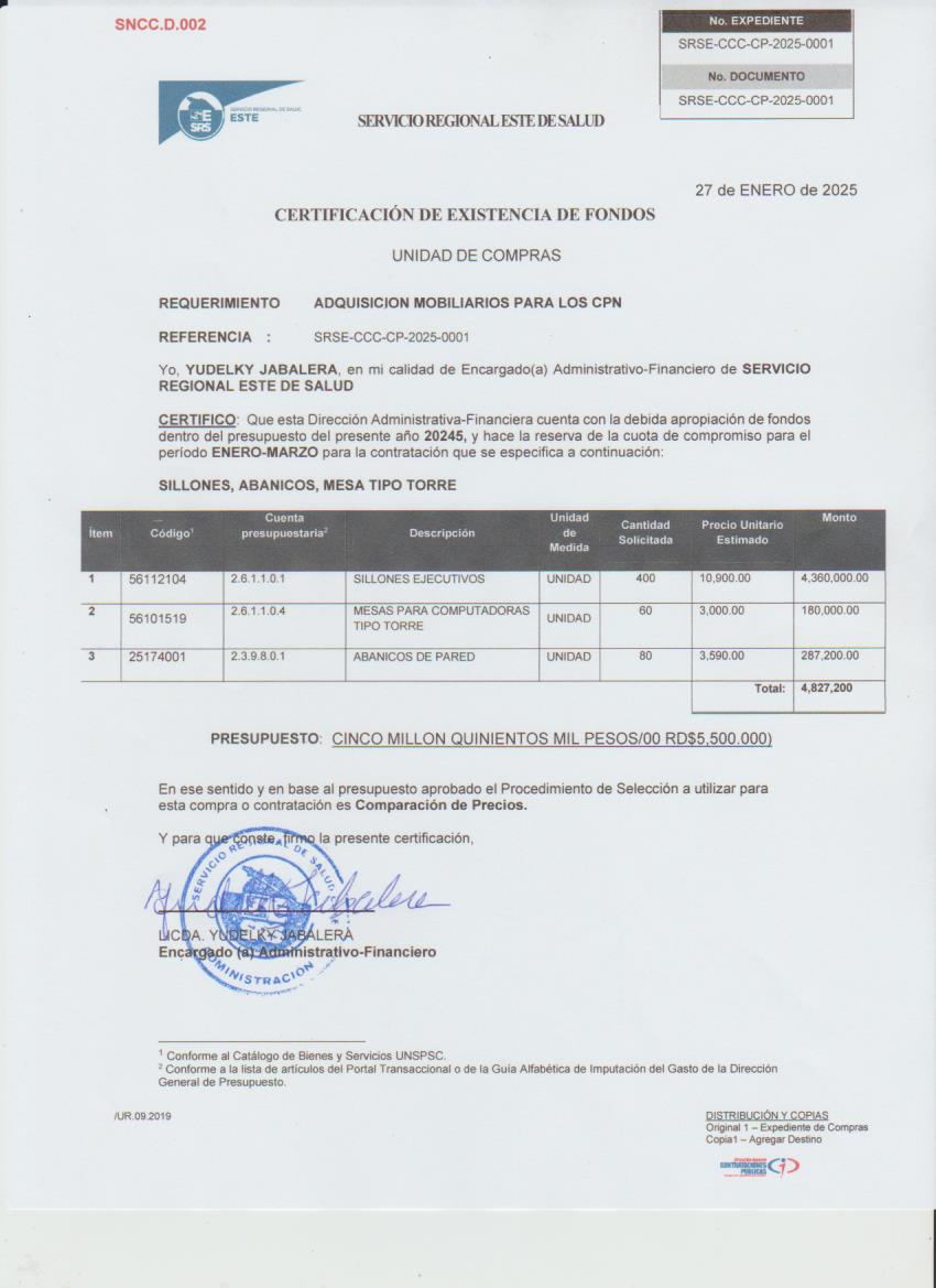| 1 | 25174001 | ABANICO PARA LOS CONSULTORIOS | 80 | 3,590.00 | 287,200.00 |